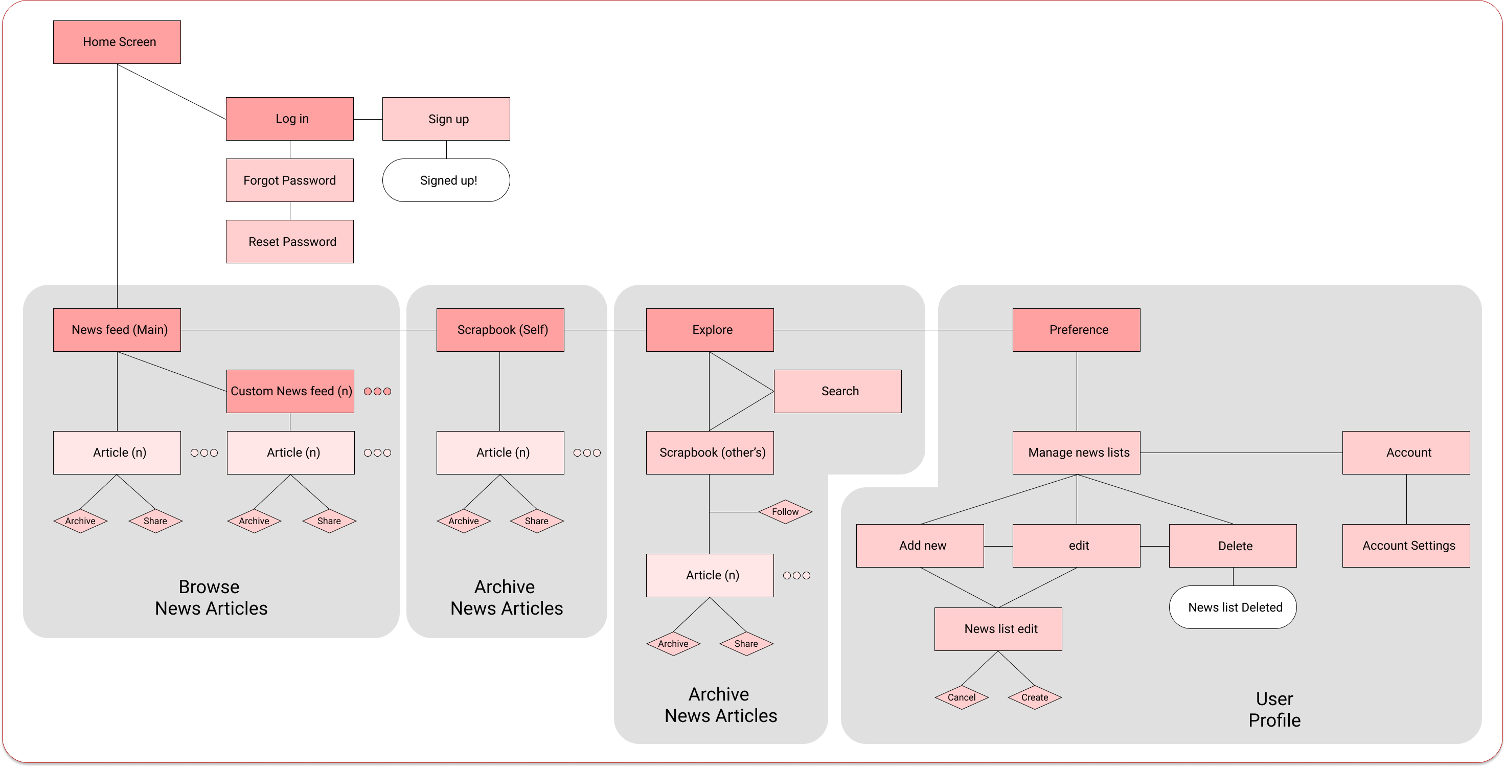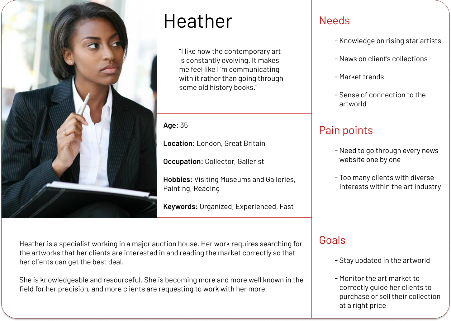 However, this process of constantly searching relevant information by painstakingly going through numerous sources or art news can often be tedious and inefficient. Based on many art industry members’ painpoint within often unorganized process of gathering relevant, up to date information, I designed a news curation app dedicated to simplifying the users’ process of searching for relevant art news.Recently, there has been a strong rise in people’s interest towards the global art industry as a collector, gallerist, or an art enthusiast. The members of the art industry must stay updated with relevant information on exhibitions, fairs, and prices of an artist’s works, to keep up with fast paced market environment.
